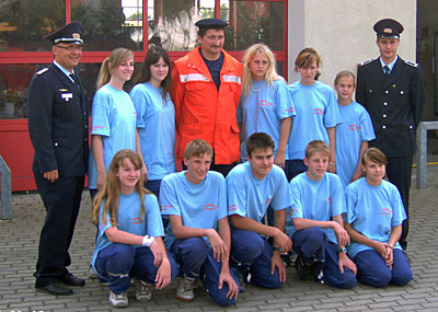 die Jugendfeuerwehr Wüstermarke beim 10 jährigen Bestehen 2005