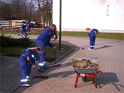 Dorfputzes halfen wir die Grünflächen und Pflasterwege rund