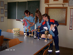 Pokale im Schulungsraum halfen unsere Mädchen . Nachdem die Arbeit