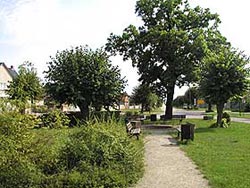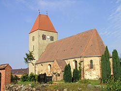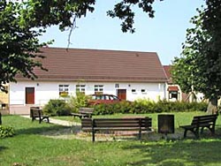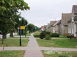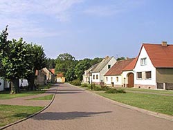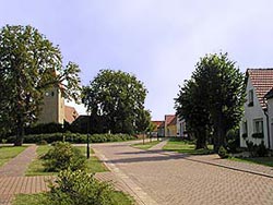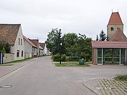 und links die breite Dorfstrasse Am Goßmarer Fließ