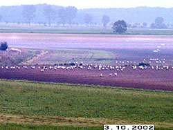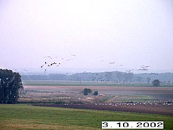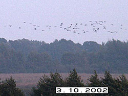 Der Anflug und Landung der Kraniche